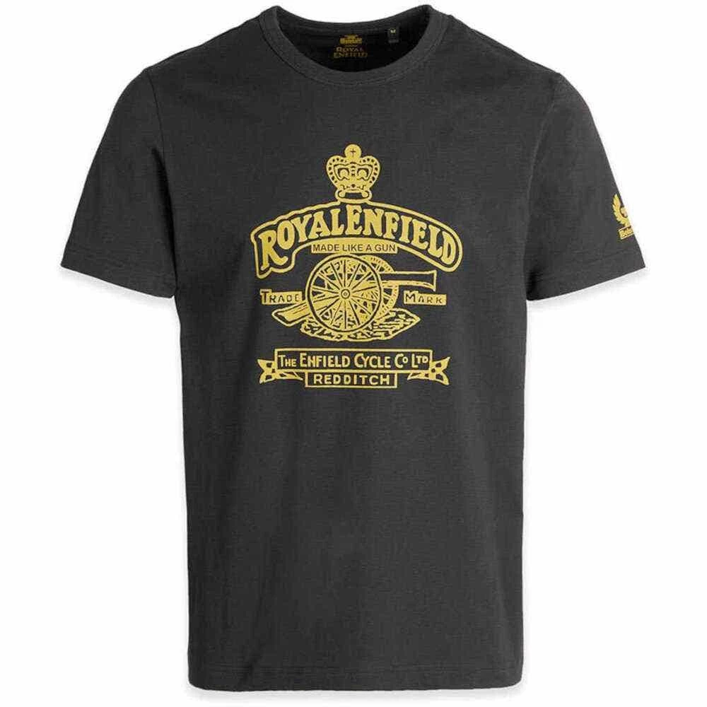 Made like a gun, goes like a bullet. This premium quality short sleeve crew neck sports Royal Enfield’s classic ‘Made like a gun’ slogan print in celebration of the beginnings of ‘The Enfield Cycle Company’. Crafted by Belstaff and features their iconic Phoenix print on the sleeve.Features: