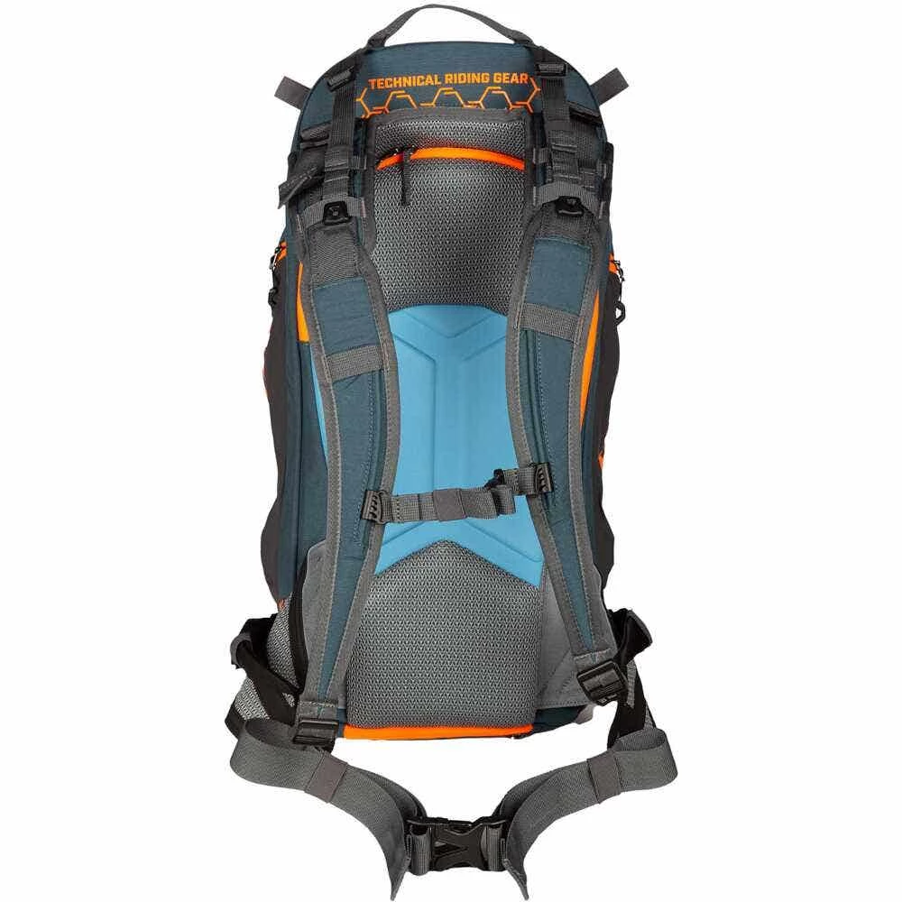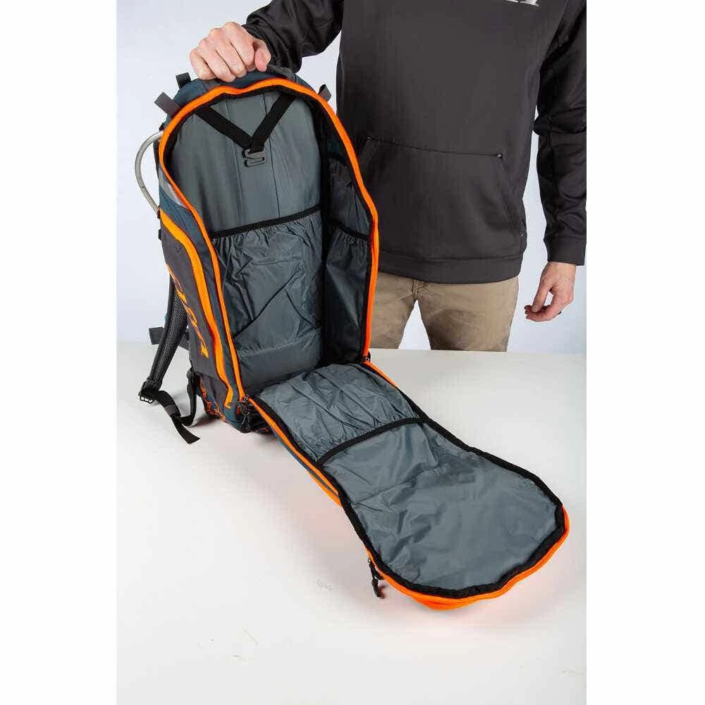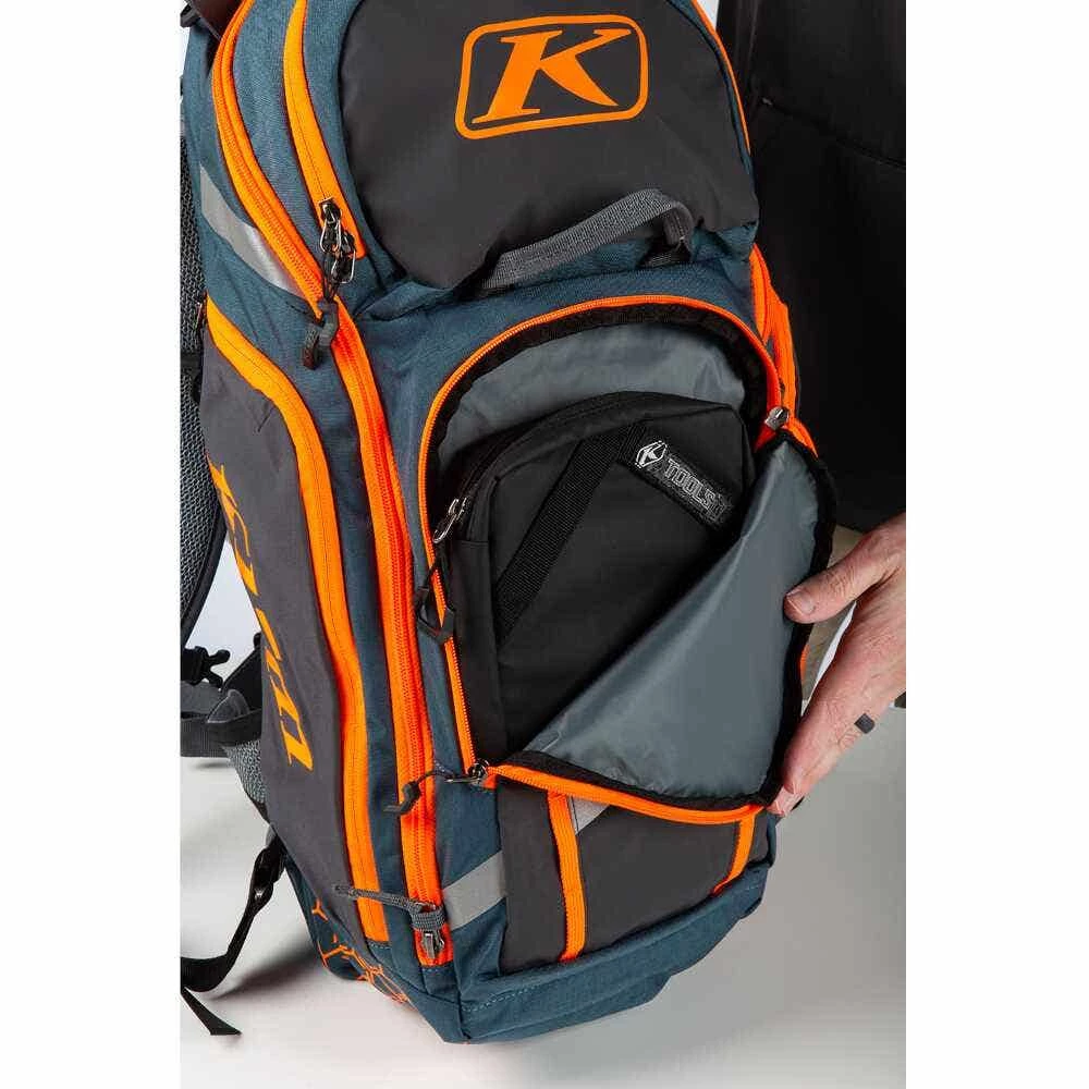 The Klim Arsenal 30 Backpack is a large capacity pack designed for off-road, dual-sport and adventure riding. Load compression and stability while riding were key build objectives, along with exceptional venting for hot weather conditions – all leading to extended comfort and a better ride. As is Klim tradition, the Arsenal 30 is built with durable materials and incorporated useful features like the removable rain fly, a tool pack and harness, pockets that fit fuel bottles, low profile hidden compression straps, hydration bladder, and more.Shell And Construction