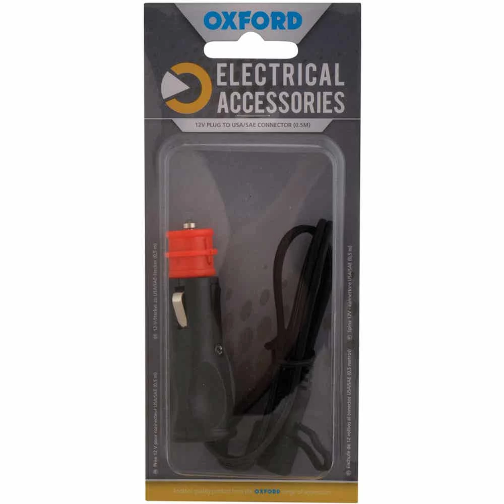 - Oxford 12v standard cigarette lighter accessory plug to USA/SAE connector.